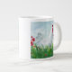 Genießen Sie Ihren Kaffee mit dieser hübschen Aquarellmalerei einer Henne auf einem Feld von Pappies des Künstlers D. Carrasco.