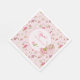 Whimsical watercolor design with little fairies in pink floating over flowers in different shades of pink and white.