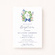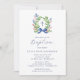 Watercolor Foliage Wreath Blue Bow Baptism Einladung