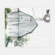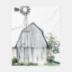 Aquarellmauer I von Jennifer Paxton Parker. Die weiße Scheune mit Grünpflanzen und einer kleinen Mühle in Grauweiß.