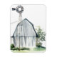 Aquarellmauer I von Jennifer Paxton Parker. Die weiße Scheune mit Grünpflanzen und einer kleinen Mühle in Grauweiß.