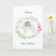 An der Vorderseite dieser personalisierten Babykarte befindet sich ein grüner, gelber, rosa Blume mit einem grauen, wasserfarbenen Elefant. Sie können die Vorderseite leicht mit einem Namen und Gratulationen-Nachricht im Inneren personalisieren. Dies würde einen süßen Sake für die neuen Eltern machen.