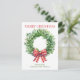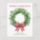 Watercolor Green Wreath With Red Gingham Bow Postkarte