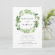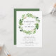 Elegante, botanische Einladungen mit Ihren Namen, umrahmt von einem Kranz mit Aquarellblättern in Frühlings- und Moosgrün. Personalisieren Sie die boho grüne Hochzeitseinladung mit Ihren Hochzeitsdetails unten. Die moderne botanische Hochzeitseinladung ist ideal für Hochzeiten im Frühjahr und Sommer.