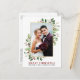 Elegante Watercolor Wintergrün Frohe Weihnachten Hochzeit Foto Neu verheiratete Ferien Postkarte beinhaltet Eukalyptus-Blätter und rote Heilige Beeren. Goldrahmen.