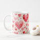 A white coffee mug featuring an all-over watercolor heart pattern with soft, hand-painted textures and a romantic artistic feel. The repeating heart design wraps smoothly around the mug, creating a charming and cohesive look that adds a gentle, warm touch to everyday drinkware.