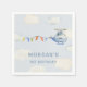 Feiern Sie den ersten Geburtstag Ihres kleinen Jungen mit diesen niedlichen Papierservieren zum Thema Flugreisen, in denen ein Wolf einen Hubschrauber mit farbenfrohen bunten Wolken und weichen Wasserfarbenwolken fliegt. Personalisieren Sie den Text, um Ihre Party-Daten Anzug.