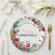 Watercolor Holly and Red Berries Wreath Christmas Pappteller