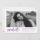 Laden Sie sich mit unseren stilvollen Einladungen zu unserer Graduierungsparty mit moderner Wasserfarbe herunter! Die Einladungen der modernen Graduiertengruppe zeigen das Foto des Absolventen in Weiß mit "Graduate" in einem trendigen lila Aquarellpinsel-Skript. Fügen Sie den Namen des Absolventen, die Schule, das Abschluss-Jahr und die künftigen Pläne hinzu. Die Einladung kehrt zu einem lila, weiß gestreiften Hintergrund mit Platz für Ihre Party-Details zurück.