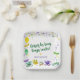 Get everything ready for a fun Mardi Gras celebration. Gold, green, and purple beads, ribbons, and fleur-de-lys in a watercolor effect are scattered around this paper plate. Mardi Gras masks, a King cake, and a crown feature on the bottom. Great addition to the table at a Mardi Gras or Fat Tuesday celebration, a Mardi Gras theme bridal or wedding shower, a NOLA bachelorette party, or a birthday celebration. Available with matching products.