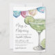 Bridal Fiesta Invitation. Celebrate the bride to be with this colorful and festive design, perfect for a margarita themed or fiesta inspired bridal shower. The front features a cheerful watercolor green margarita glass surrounded by zesty lime slices on the right side, adding a playful and vibrant element.