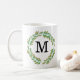 Watercolor Monogram Gold Green Blätter Wreath Kaffeetasse