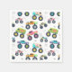 A fun and playful seamless pattern featuring colorful monster trucks with bold tires, dripping paint details, and cute cartoon style. Perfect for kids