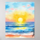 Watercolor Ocean Sunset Poster Soft Golden Light