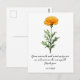 Celebrate October birthdays and thoughtful moments with this vibrant watercolor Marigold birth flower postcard. Featuring hand-painted marigolds in warm, sunny tones, this design symbolizes warmth, creativity, positivity, and gratitude, making it perfect for expressing heartfelt thanks. Printed with the cheerful message: “Your warmth and creativity are as vibrant as the marigold. Thank you.” This postcard is ideal for sending appreciation to someone special born in October, including with a gift, or sharing a meaningful note with friends, family, or customers. It also makes a lovely keepsake for marigold lovers and anyone who enjoys floral stationery or botanical art. Whether mailed, tucked into a gift, or displayed as part of a birth flower collection, this October Marigold postcard offers a bright and personal way to say thank you.