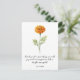 Celebrate October birthdays and meaningful moments with this vibrant watercolor Marigold birth flower postcard. Featuring hand-painted marigolds in warm, sunny tones, this design symbolizes joy, positivity, warmth, and encouragement, making it a perfect way to express heartfelt gratitude. Printed with the cheerful message: “Thank you for spreading warmth, joy, and encouragement, like a bright marigold.” This postcard is ideal for sending appreciation to someone special born in October, including with a gift, or sharing a thoughtful note with friends, family, or customers. It also makes a lovely keepsake for marigold lovers and anyone who enjoys floral stationery or botanical art. Whether mailed, tucked into a gift, or displayed as part of a birth flower collection, this October Marigold postcard offers a bright, uplifting, and personal way to say thank you.