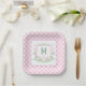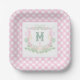 Watercolor Pink 1st Birthday Monogram Crest Party Pappteller
