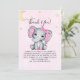 Watercolor Pink Elephant Baby shower girl Dankeskarte