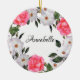 Watercolor Pink Flowers Wreath Circle Keramik Ornament