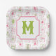 Watercolor Pink & Green Bow Mahjong Tiles Monogram Pappteller