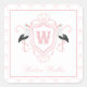 Watercolor Pink Stork Bow Monogram Crest Quadratischer Aufkleber
