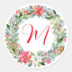 Watercolor Poinsettia Christmas Wreath Monogram Runder Aufkleber