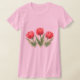 Elegant watercolor illustration of red tulips with soft green leaves, inspired by nature and floral beauty.