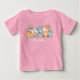Watercolor Safari Baby Animals Baby Shirt. Zu den Kleinkindern zählen Elephant, Monkey, Giraffe, Rhino, Zebra und Lion auf Farn-Blätter. Botanische Vegetation in Aquarellen. Rosa Text. Name hinzufügen.