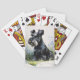 A soft watercolor-style illustration of a calm schnauzer seated among delicate blue wildflowers and meadow grasses, featuring gentle textures, a light neutral background, and a peaceful, natural atmosphere.