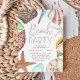 Die niedlichen Einladungen der sommerlichen Beachvolleyparty mit Aquarellfarben, Seestern und Seeglasseien, darunter Junonia, Conch, Sand Dollar, Auger und Muschel. Personalisieren Sie Ihre persönlichen Gesprächsdetails im Zentrum.