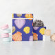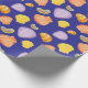Feiern Sie besondere Anlässe mit diesem Verpackungspapier mit einem farbenfrohen Muster aus roten, gelben und violetten Muscheln in Aquarellfarbe auf blauem Hintergrund. Die Sommerfreuden mit diesem Meeresthema ins Party bringen oder es als Geschenk für Freunde des Strandlebens nutzen.
