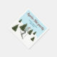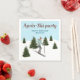 Add a festive touch to a birthday on the slopes with these ski-themed paper napkins, designed by Destei. The design features a watercolor illustration of a girl skiing down snowy slopes, wearing a teal jacket with a brown hat and gloves, with green fir trees around her under a light blue winter sky with falling snow. Personalizable text areas make this design perfect for a winter birthday party.