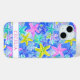 Customize this colorful watercolor starfish in blue, aqua, yellow and pink iPhone 15 pro max case with your your name in a trendy modern CAP font in pink on white. It's so modern and trendy!