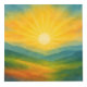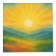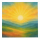 A serene watercolor sunrise landscape painting with warm yellow sun rays over soft blue and green hills. Perfect artwork for wall decor, greeting cards, posters, gifts, and inspirational products. This peaceful sunrise design brings calm, hope, and positive energy to any space.