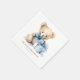 These square paper napkins feature an adorable watercolor illustration of a sweet, sitting teddy bear with a large blue bow tie and a matching blue-wrapped gift. The gentle and soft design, personalized with "OLIVER'S BIRTHDAY," makes them perfect for any little boy's first birthday celebration, baby shower, or christening. They are designed to coordinate perfectly with the matching plates and add a charming, custom touch to your dessert or lunch setting.