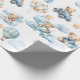 A charming and whimsical gift wrap featuring a repeating pattern of adorable watercolor teddy bears in various poses: flying vintage airplanes, riding in blue cars, holding balloons, sitting on clouds, and floating in hot air balloons. The soft blue, beige, and white color palette is perfect for baby showers, first birthdays, or any special occasion for a little boy or girl. This versatile paper adds a sweet, personalized touch to any present for a little adventurer.