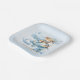 Serve your party treats on these charming square paper plates featuring an adorable watercolor illustration. The design showcases a sweet teddy bear pilot flying a light blue vintage airplane through soft clouds. Personalize them with your child's name and birthday date to create a perfect, whimsical, and memorable setting for a first birthday, baby shower, or aviator-themed celebration. The blue, brown, and white colors are ideal for a gentle, cheerful children's party.
