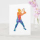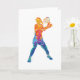 Farbenfrohe Darstellung einer Frau, die Tennis im Aquarellstil spielt. Großer Geschenkspieler