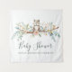 Eine weiche Aquarellbild von Waldtieren im Wald umgeben von Blume. Lieblich für eine geschlechtsneutrale Feier.