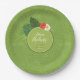 Farbige Teller aus Papier mit einem runden, im Frühjahr angelegten, grünen Rahmen, umgeben von Hibiskus- und Palmenblüten. Das sich wiederholende, palmenblättrige Hintergrundmuster ist optional und kann bei Bedarf gelöscht werden. Skripttext von 'Liebe und Dank' ist ebenfalls optional. Fügen Sie Ihre Namen und das Hochzeitdatum mit der bereitgestellten Vorlage hinzu. Dieses tropische Design ist ideal für Sommer-, Strand- und tropische Hochzeiten, Geburtstage und andere besondere Veranstaltungen. Suchen Sie die ID577, um passende Produkte anzuzeigen.