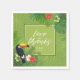 Farbenvolles Hochzeitspapier Serviette-Design mit einem quadratischen, federgrünen Rahmen mit Eckrahmen eines kühnen Toucan sitzend zwischen Aquarellblüten und Palmen Blätter. Das sich wiederholende, palmenblättrige Hintergrundmuster ist optional und kann, falls gewünscht, in Weiß geändert werden. Diese tropischen Servietten eignen sich ideal für Hochzeiten im Sommer, am Strand und bei tropischen Hochzeiten, Geburtstagen und anderen Veranstaltungen. Suchen Sie die ID577, um passende Produkte anzuzeigen.