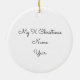 Dieser bezaubernde Weihnachtsschmuck zeigt eine Aquarellillustrierung eines niedlichen Igels mit seinen Weihnachtsgeschenken auf der einen Seite, dem Ort, an dem Sie ihn auf der anderen Seite personalisieren können.