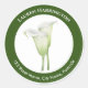 Entworfen auf der Basis meiner Aquarellbilder von weißer Calla-Lilie mit sanften, zarten, weißen grünen Blättern. Das Design hat einen dunkelgrünen Kreis auf der Außenseite und Texte, die oben und unten personalisiert werden können. Es wird einen schönen Umschlag Aufkleber machen.