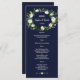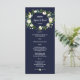 Watercolor White Floral Dark Blue Wedding Menu Menükarte