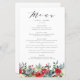 Watercolor Winter Blooms Garland Wedding Menu Card