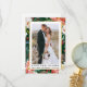 Elegante Watercolor Winter Floral und Greenery Bride und Groom Liebe und Dank Hochzeit Foto Dankeschön Sie Karte beinhaltet rote Poinsettias, weiße Rosen, heilige Beeren und botanische Vegetation. Goldrahmen.