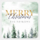 Dieser Aufkleber ist mit einer Hand bemalt, eine weiche Aquarell Weihnachtsbaumen, Kiefern und Hintergrund. Mit goldenen Akzenten. Personalisieren und senden Sie eine Fotokarte an Freunde und Familie wird Liebe. Fügen Sie Ihren eigenen Gruß und alle Namen hinzu.