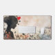 This pastoral customizable desk mat features a romantic silhouette of a girl with butterflies rising from her profile and a small red heart above. the light, pastel-toned background evokes love and freedom in a delicate and whimsical style. you can customize the text.