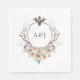 Hochzeitsnapkins mit einem blumengeschmückten Waldwald-Wappen, das mit den Initialen des Ehepaares individuell gestaltet werden kann.