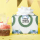 Dieses klassische Weihnachtsverpackungspapier hat einen Aquarellkranz mit blauem Bogen und sagt "Frohe Weihnachten" und personalisiert mit Ihrem Familiennamen auf einem blau-weiß pinstrierten Hintergrund.